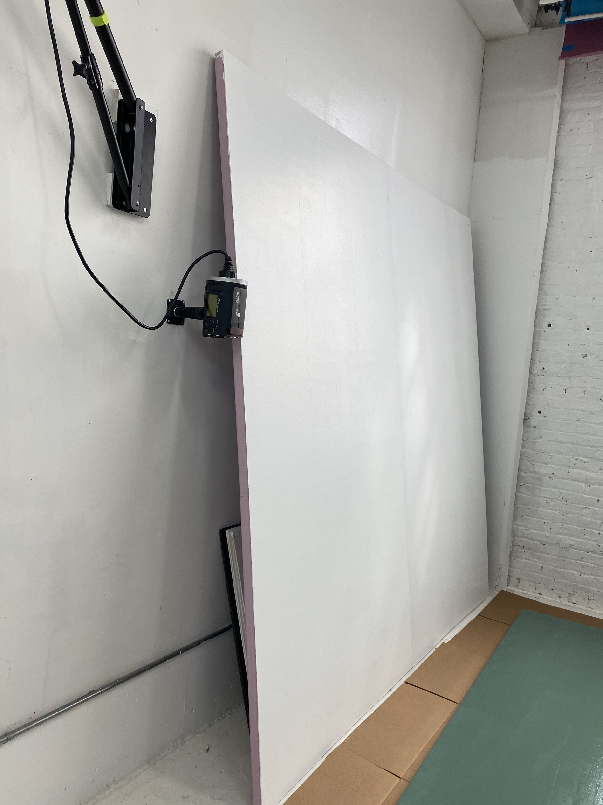 I have already had four 8ft by 4ft styrofoam boards in the studio I wanted to use for temporary walls in the studio. Now the only I needed to do is to prime and paint.